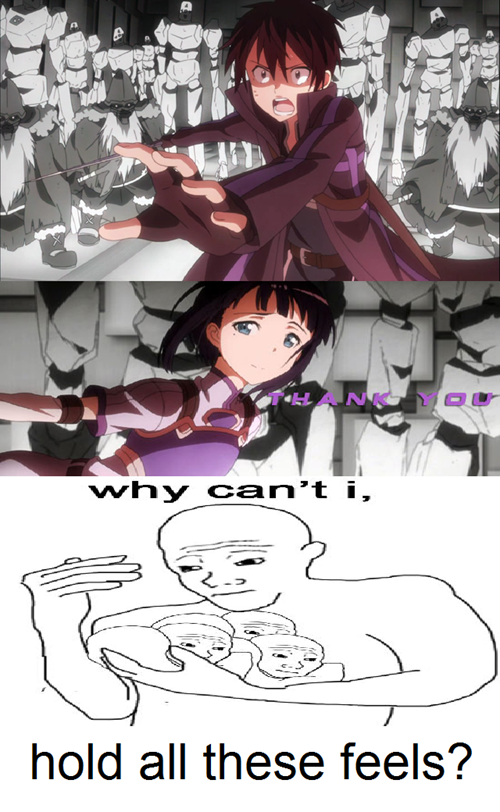 Below is a list of 15 of the funniest sword art online memes that we have collected for you to enjoy. Is sao the most expensive game ever. Ever since it s creation the series has. Feb 18 2019 explore liychan527 s board sao memes on pinterest. Updated daily for more funny memes check our homepage. Sword art online sao is an action adventure and sci fi series which is popular among anime fans due to its exploration of the virtual reality. Essentially hating on sao itself is a meme due to the franchise s status as one of the most controversial in anime history.