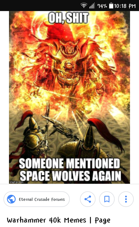 Warhammer 40k space wolves meme. Raiding guild shares their story with the game s rich meme culture general grievous obsession with collecting lightsabers soars into memedom little women fans have noticed two water bottles left in the movie. Yo dawg i heard you like wolves so i put a wolf on your wolf so you wolf while you wolf. Warhammer 40k space wolves warhammer 40k memes warhammer paint warhammer models warhammer 40000 wolf painting warhammer 40k miniatures crusaders the grim. Warhammer 40000 warhammer 40k memes warhammer 40k figures warhammer art warhammer 40k miniatures warhammer fantasy warhammer 40k space wolves dark humour memes lord. Sep 12 2019 explore john kosinski s board warhammer 40k memes followed by 108 people on pinterest. See more ideas about warhammer 40k memes warhammer warhammer 40k. However if he wolfs your wolf first then your wolf is wolfed blood angels spawned a similar snowclone meme thanks to their codex using the word blood as much as space wolves codex uses wolf.